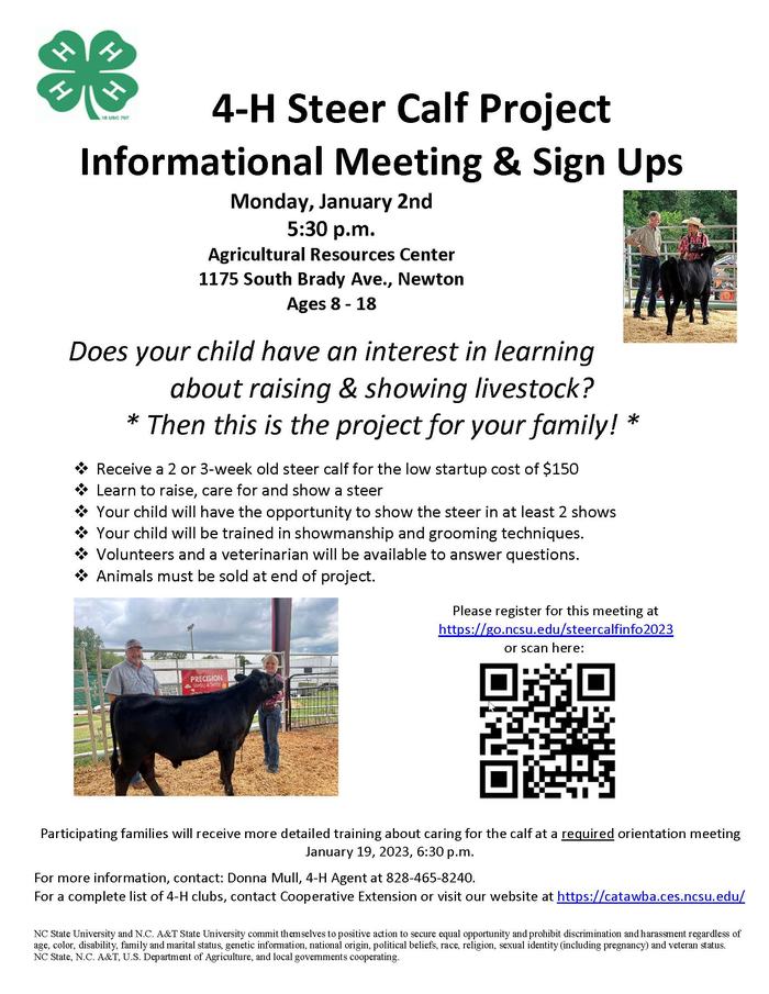 4-H Steer Calf Project Informational Meeting & Sign Ups
